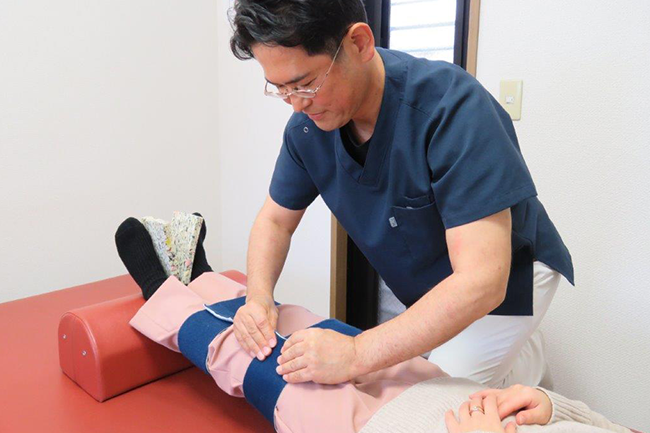 具体的に、身体を揺らして背骨の歪みをとり、慢性的に身体にかかっている負担を根本的に取り除く施術を行っております。